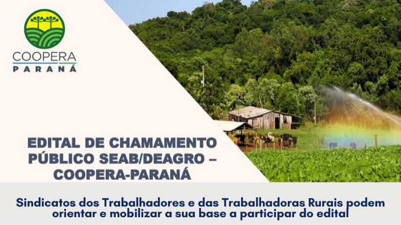 Fortalecer o cooperativismo da agricultura familiar, com foco no desenvolvimento rural sustentável e na geração de trabalho e renda no campo, é o propósito do Programa Coopera-Paraná, lançado pelo Governo do Estado do Paraná. O edital de chamamento público foi divulgado no dia 12 de janeiro e sua elaboração contou com a participação ativa da FETAEP.